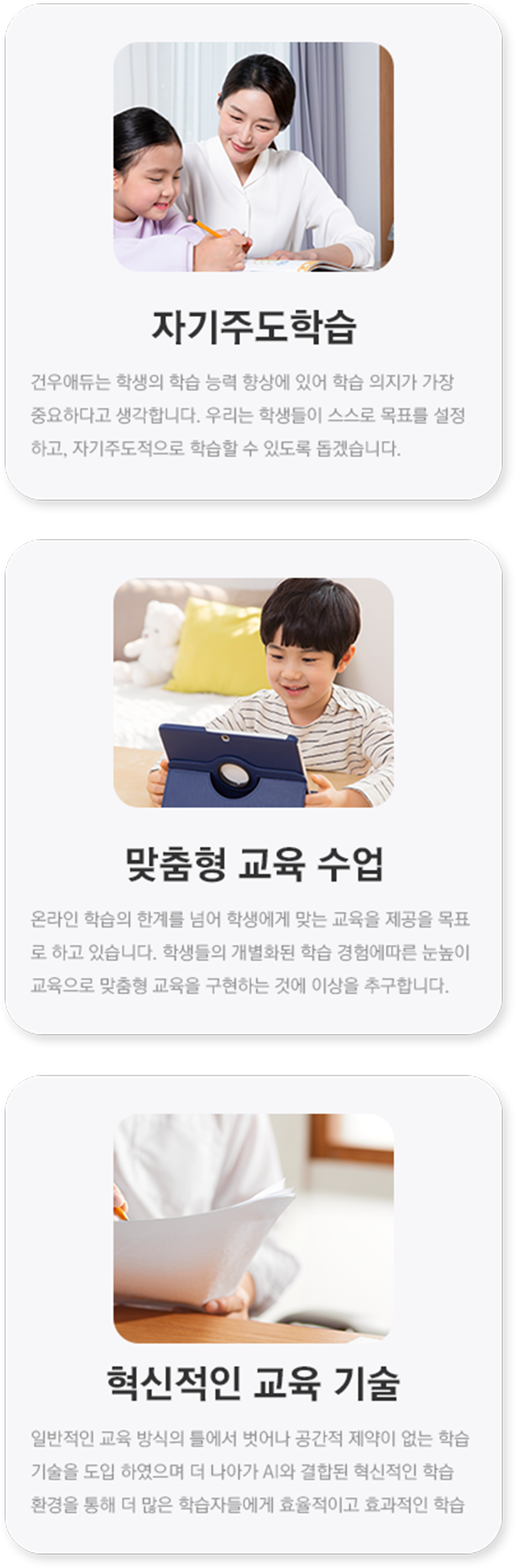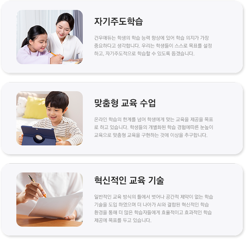 건우애듀에서 추구하는 학습의 방향 및 가치